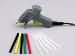 . В так называемый клеевой пистолет вставляется стержень сухого клея, кончик которого при работе нагревается и соединяет детали.