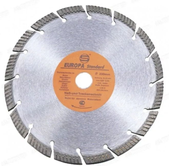 Согласен, что резать кирпича придётся много. Можно конечно попытаться обойтись и кирочкой, но разломы будут не красивыми, не ровными и не качественными. А при том, что кирпич сейчас довольно не качественный, то лома будет много. Поэтому этот вариант мы отметаем. Я давно для себя выбрал для этой работы алмазные диски, которые насаживаются на болгарку. Примерно вот так этот диск выглядит.