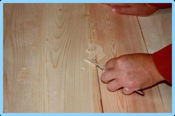 Древесная шпаклевка. Желательно применять на участках с небольшими механическими нагрузками (у стен).