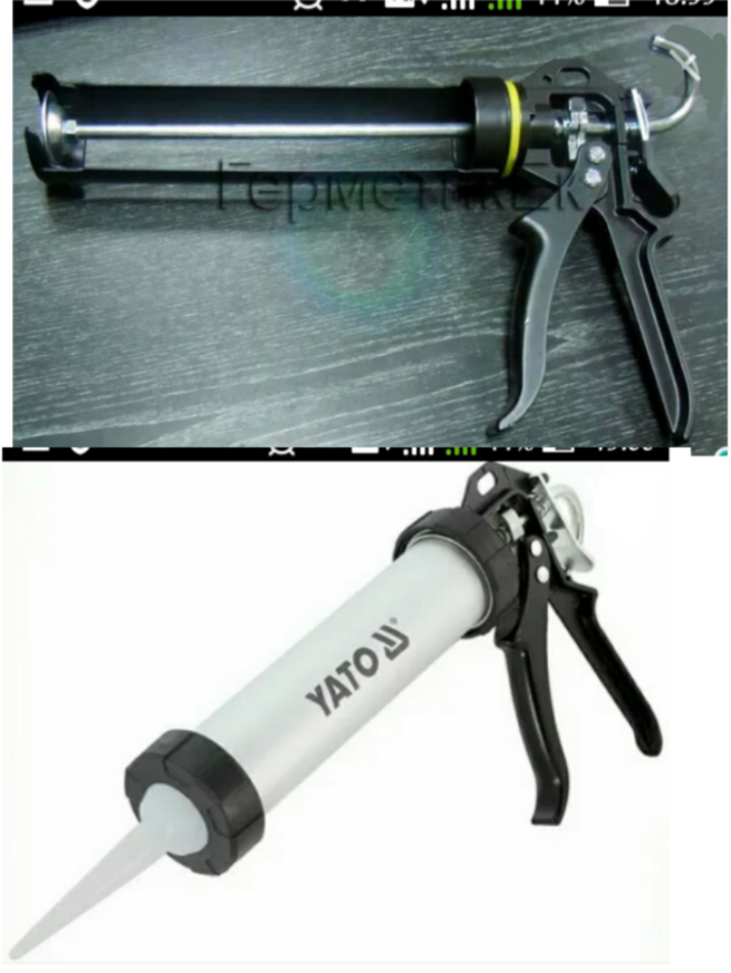 Далее приставляем наконечник герметика к шву, см пистолет держим параллельно, выдавливаем герметик из тубы, заполняем шов без пропусков.