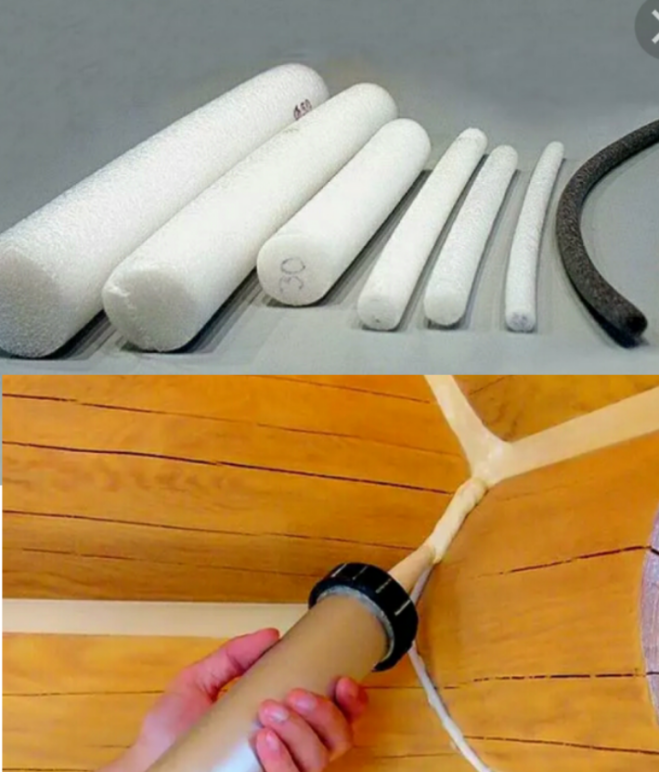 Далее лучше начинать с горизонтальных швов между брёвнами, если шов широкий, то возможно использование уплотнительного шнура до нанесения герметика.