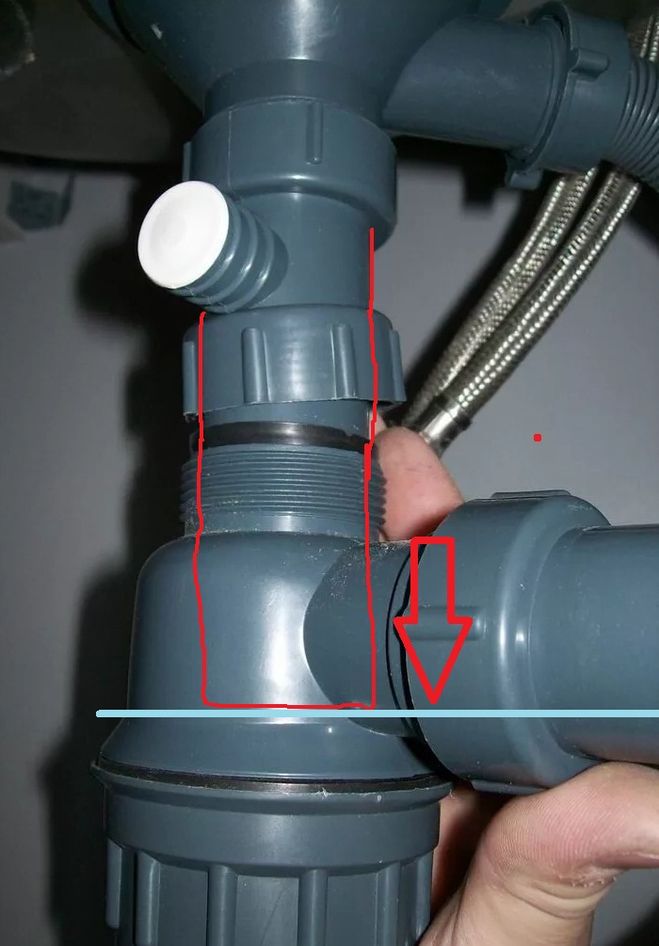 Если отталкиваться от фото под вопросом, то сифон собран правильно, но не до конца.