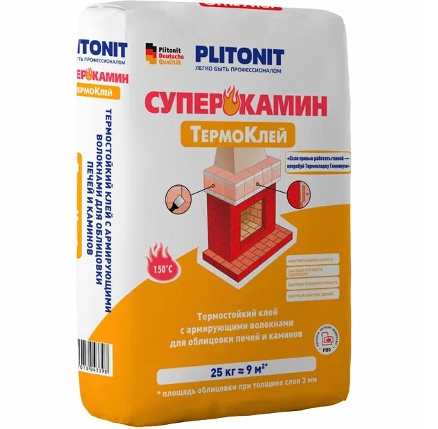 Видите небольшой значок пламени и цифры 150, это означает, что он не изменяет своих свойств до 150 градусов. По сути своей это обычные раствор (клей) для кладки кирпичной печки, какой был и раньше, только теперь это термоклей. А термоклей, потому как работает до 150 градусов.