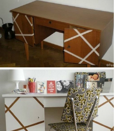 Обклейте лейкопластырем двери у стола (проведя полоски), после чего покрасьте его белой краской.