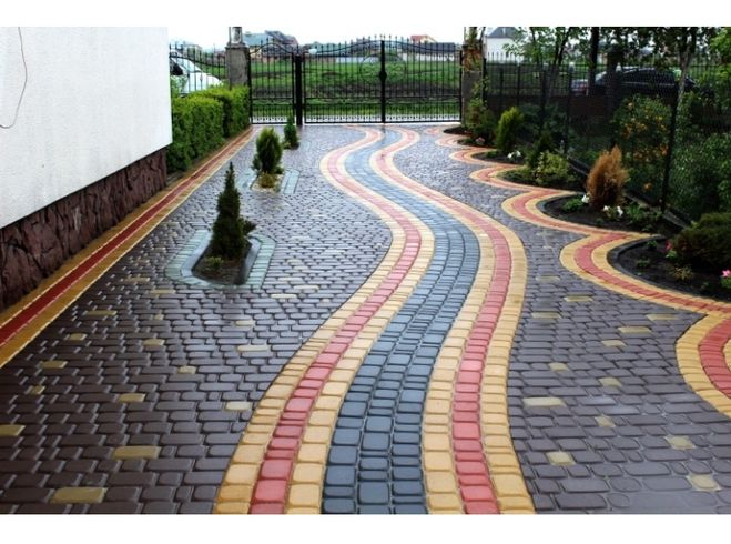 Посредством радиальной укладки можно выложить не только круги и овалы, но и дорожку синусоидой или кривой, или островок кляксой.