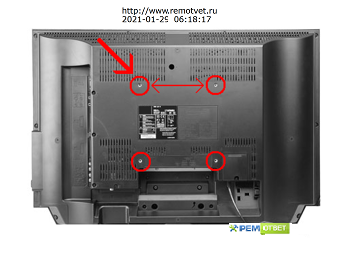 Переворачиваем телевизор экраном вниз, на задней стенке телевизора есть вот такие