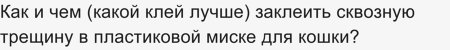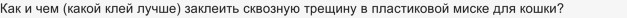Цена изделия незначительная, на мой взгляд проще и правильней приобрести новую миску чем ремонтировать старую (заклеивать, заделывать трещину).