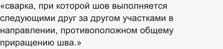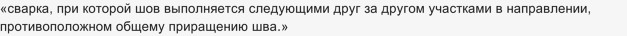При сварке необходимо учитывать, что нержавейка, нагреваясь, расширяется больше, чем черный металл, поэтому при сварке «встык» обязательно делаем зазор между заготовками и вначале прихватываем заготовки в нескольких местах, а потом приступаем к сварке. Если детали длинные, сварку выполняем обратноступенчатым методом. В ГОСТ 2601-84 по сварке металлов есть описание этого метода: