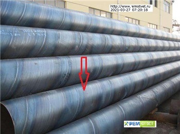 В шовных трубах шов идёт или параллельно оси трубы, или же речь о спирально-шовных трубах, вот так эта (спирально-шовная) труба выглядит на фото.