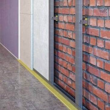 На ровную (оштукатуренную) стену крепится тонкая звукоизоляция из минваты толщиной 20-30мм. По периметру стены на прилегающих стенах, потолку и полу закрепляется демпферная лента – она не позволит обшивке касаться конструктивных элементов. Плиты высокой плотности закрепляются временно (на период монтажа) точечно клеем или пластиковыми «зонтиками». Звукоизоляционные плиты закрываются гипсоволокнистыми листами, закрепленными пластиковыми дюбелями. Межлистовые швы заполняются герметиком. ГВЛ закрываются листами гипсокартона. Выступающая по периметру демпферная лента обрезается, стык заделывается герметиком.