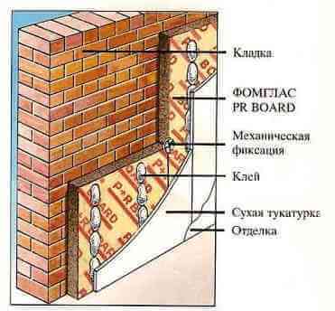 Плиты толщиной 40-180мм с помощью пластиковых «зонтиков» закрепляются на стене, к плитам приклеиваются листы гипсокартона. Швы между листами заполняются герметиком и проклеиваются армирующей лентой.