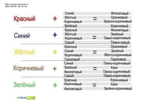 Например если смешать красную масляную краску с белой, то можно на выходе получить розовый цвет, при смешивании жёлтой краски с красной можно получить оранжевый цвет и.т.д.