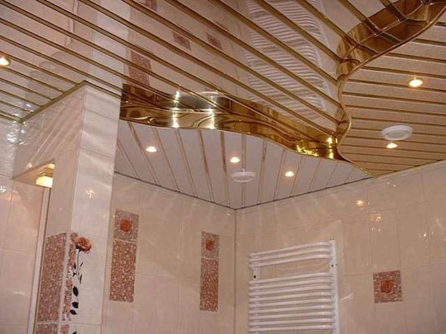Считаю, что оптимальным решением для ванной комнаты есть алюминиевый реечный потолок. Он влагостойкий, в отличии от гипсокартонного, вода свободно проходит между рейками, в отличии от натяжного потолка. Реечный потолок не горюч и не выделяет неприятного запаха или токсичных испарений при нагревании от встроенных светильников, в отличии от пластиковых панелей. Да и выглядит такой потолок шикарно, имеет много вариантов и комбинаций расцветок и дизайнерских решений.