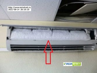 Внутренний блок кондиционера в инее (или появился лед), вот фото для наглядности