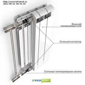 В случае с биметаллическими радиаторами изготавливаются они из двух металлов ("би" то бишь), то есть речь не о сплавах, а о разных металлах.