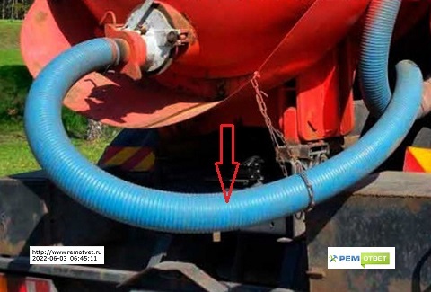 Специальным фекальным насосом из выгребной ямы нечистоты перекачиваются в емкость (промежуточную) и далее из емкости в машину.