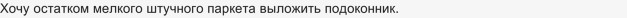 Далее, откройте створку окна и проверьте зазор между створкой и подоконником, возможно приклеить древесину (паркет о котором Вы пишите) не позволит зазор между подоконником и окном (створкой, открывающейся).