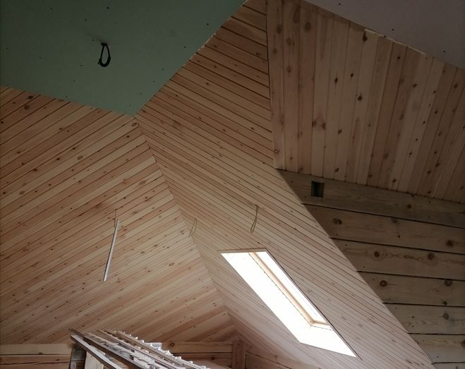 В некоторых случаях предпочитают крепить вагонку диагонально. Например, я отделывал мансарду, где длина ската превышала 3м — максимальную длину вагонки. Есть вагонка 4м, но ее сложно было найти. А если расположить по диагонали, то 3м как раз хватало. И получилось намного красивее, чем если бы даже длины хватало для вертикального крепления.