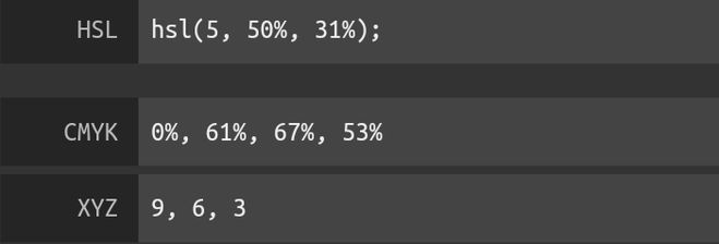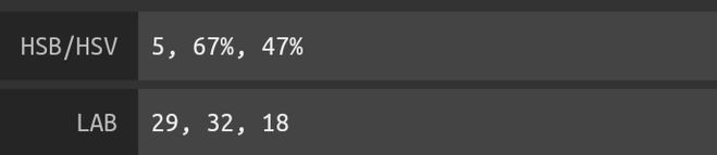 Отдаленно похожие цвета: кармин, сангина, бургундский, бордовый. Разница в том, что этот цвет теплый, а те холодные — их значение приближается к 359, а в составе содержится синий. У нашего цвета значение h=5, а его состав таков: черный 41%, красный 39%, белый 16% и желтый 4%.