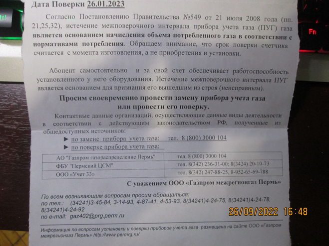 - уведомлять в установленном договором порядке абонента о дате и времени проведения проверки, а также об изменении цен (тарифов) на газ;