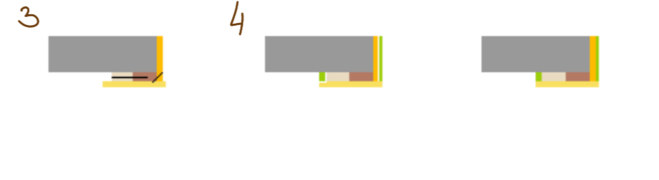 Головки саморезов утапливаем в доске (то есть монтаж с углублением).