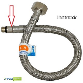 Далее, при вкручивании шланга в смеситель, нельзя заворачивать шланг за запрессованную "гильзу", или за оплетку.