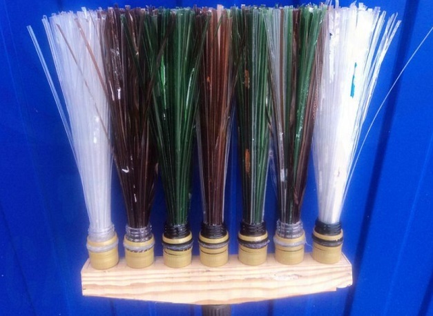 Есть и другие способы изготовления веников, например не плющить их, чтобы веник был круглый, или изготавливать его из нескольких рядов бутылок, где можно отдельно нарезанные пластины фиксировать в горлышке.