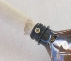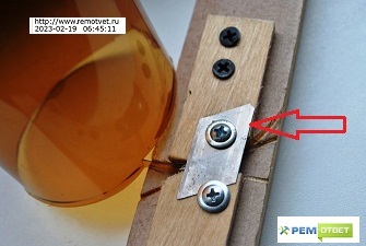 После чего просверлить отверстие в горле и черенке, лучше всего по середине и насквозь, туда закрутить саморез.