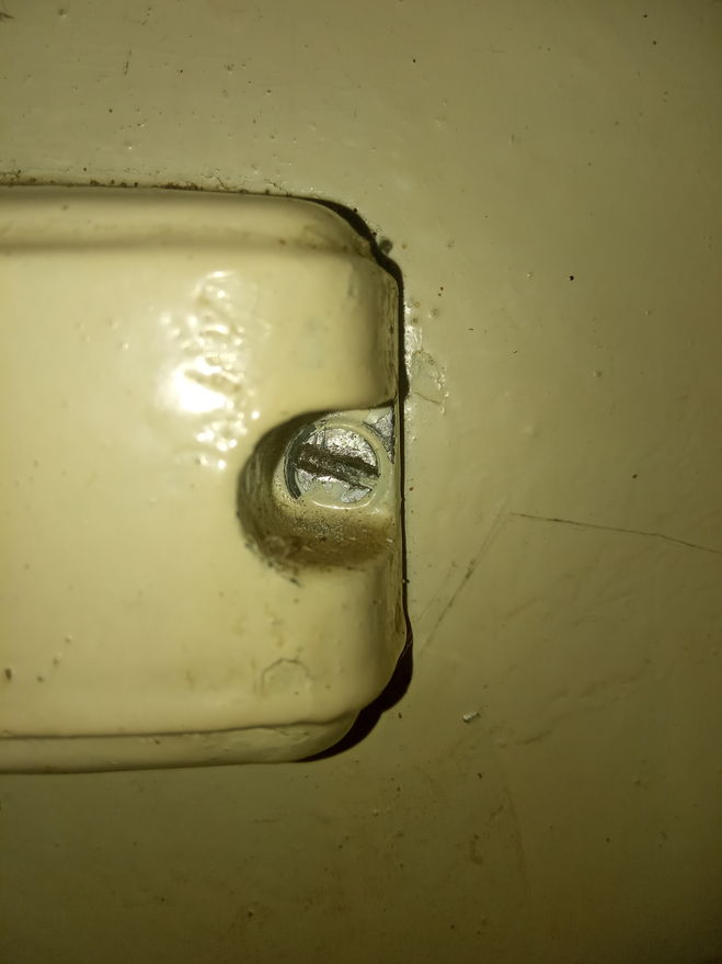 Далее, на Вашем фото метиз (его головка, шляпка) залиты краской, удаляем краску, можно острием ножа с жестким лезвием, можно даже шилом, смотрите по месту, какой инструмент эффективней.