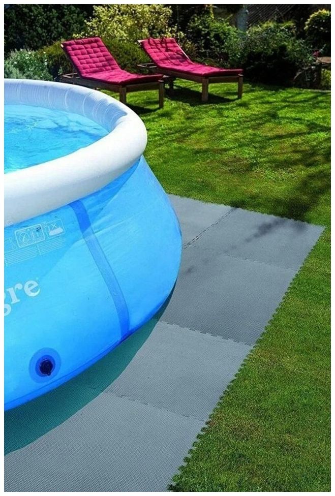 Дно каркасного бассейна не получится усилить, хотя технически вполне возможно наклеить туда толстую ПВХ плёнку, вы потом просто этот бассейн не соберёте и мыть его будет очень трудно. Гораздо проще приобрести под него специальную защитную подстилку, которая собирается из отдельных элементов по принципу пазлов. Потом просто ставите на неё бассейн и вероятность порвать его сводится почти к нулю. Но идеальным решением считается прочный деревянный постамент, на который стелется дешёвая подложка для ламината, а затем сверху ставится бассейн. Это решит все проблемы в корне и облегчит к тому же слив воды в конце сезона.