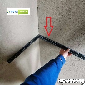 но ориентируйтесь на ровность поверхностей, не всегда получается выдержат угол в 90 градусов (стены завалены относительно друг друга), да и не всегда в этом есть смысл.