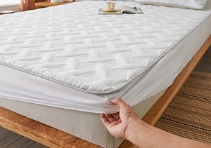 Дополнительно на матрас лучше надеть наматрасник, причем с поверхностью из натуральной ткани, а сверху уже застелить простыню на всю эту конструкцию (матрас + наматрасник).