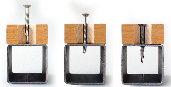 Поэтому шляпка самореза флюгель хорошо притягивает деревянную деталь.