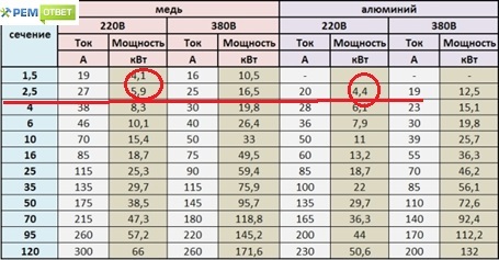 Правильно подбирайте сечение проводов и обращайте внимание на материал их изготовления, например медь, алюминий. при одном и том же сечение жил проводов, рассчитаны на разную нагрузку, вот таблица