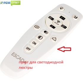 Светодиодные люстры разные, у нас потолочная с дистанционным пультом управления, пуль выглядит вот так