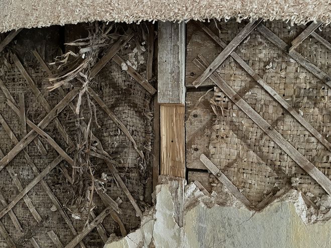 Такую ткань, под дранкой, я встречали в домах построенных позже, указанного срока (до 1917 года).