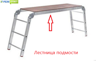 монтажной платформы (лестницы подмости) можно самостоятельно сколотить "козлы" и между "козлами" установить настил из досок и.т.д.