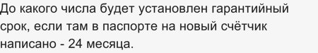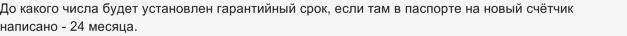 В паспорте водосчетчика указывается дата его продажи (см. фото выше) к этой дате прибавляем 24 месяца, это и будет срок гарантии от производителя.