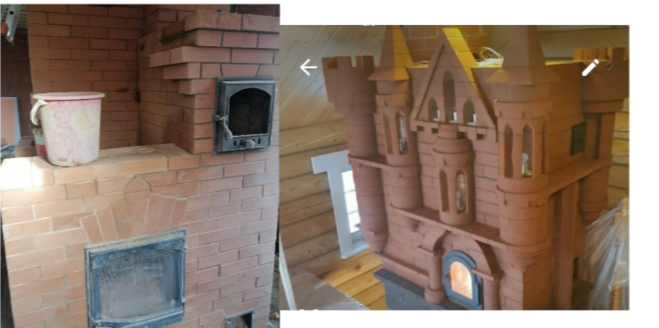 В обоих случаях стоимость зависит от таких факторов, как: 1) удобство рабочего места, удалённость поддона с кирпичами и куч глины и песка от места будущей печи, захламлённость рабочего места, температура в помещении. При +5 можно работать, но некомфортно, и за это тоже может быть прибавлен процент к стоимости работ; если приходится постоянно ходить через полог и завешивать его после себя, то и за это могут насчитать. Это тоже неудобство и много времени отнимает. 2) наличие непредусмотренных дополнительных работ, например, развешивание пологов, завешивание полиэтиленом, расхламление рабочего места; 3) наличие и количество художественной резки/кладки. Печка справа будет кратно дороже печки слева