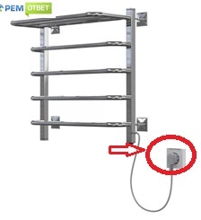 У нас тоже установлен электрический полотенцесушитель, на конце сетевого шнура находится вилка, вот фото
