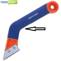 скребок, удаляем старую затирку и заполняем швы новой.