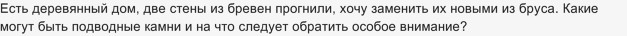 Дом деревянный есть, но какие в нем угловые соединения - неизвестно. Известно, что прогнили две стены, но неизвестно, эти стены расположены вместе и образуют угол или стоят отдельно друг от друга, параллельно?