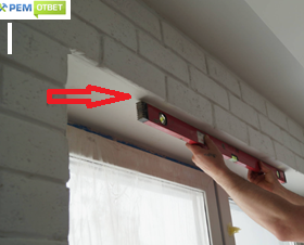 - проверить горизонтальность верхнего откоса и вертикальность боковых,