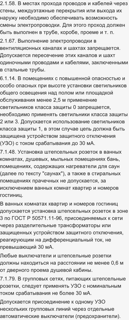 Советую для не допущения ошибок при монтаже электропроводки изучить Правила целиком.