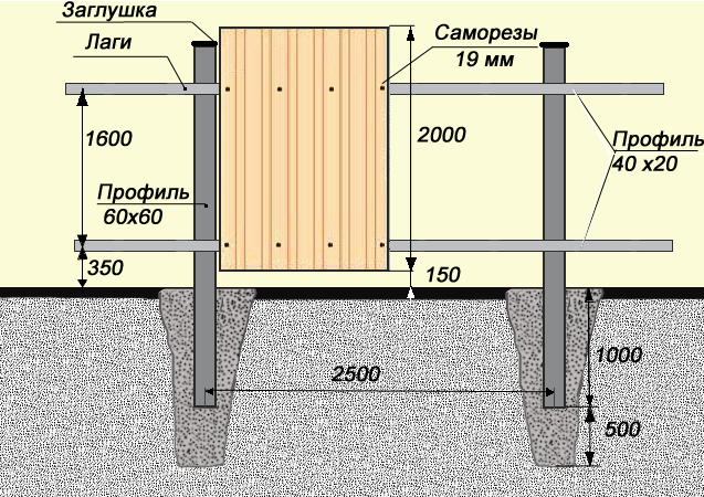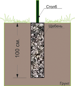 Буром (можно и вбить, смотрите по месту) под столбы делаются углубления (см. выше о глубине).