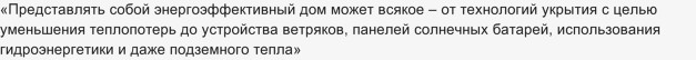К примеру на Камчатке строят дома, отопление которых завязано на естественных ресурсах, это горячая вода из недр земли, гейзеры, термальные источники, термальные ключи и так далее.