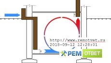 на схеме, в наличие 2 трубы, край одной у пола, 2 труба у потолка (диаметр труб рассчитывается отталкиваясь от кубатуры и площади погреба).