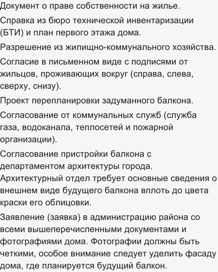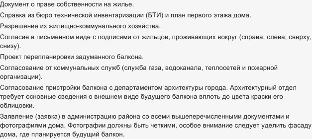 Список документов, необходимых для согласования проекта пристройки балкона.