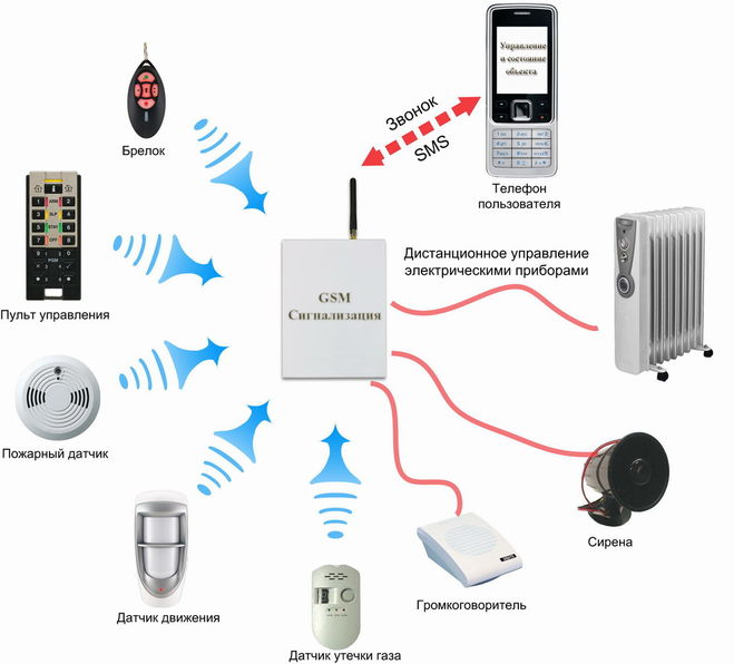 Хочу лишь однозначно сказать, что эта сигнализация должна быть только принципом связи с охранной фирмой по средствам GSM (то есть от мобильного, сотового оператора связи).