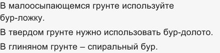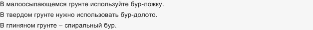 Также в бурении важно использовать правильный бур, в зависимости от типа грунта конкретного отрезка дачного участка, на котором проводятся работы.